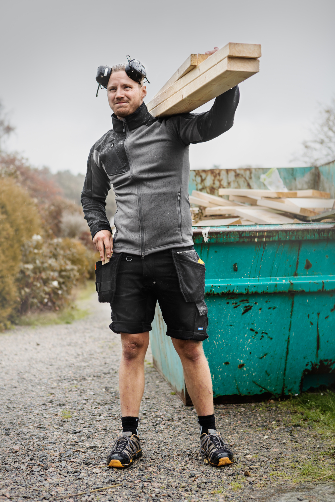 The 5528 SHORTS EXTREME features a leg pocket on the left side equipped with a flap and press-stud closure, an internal phone pocket, and a bracket for ID cards, ensuring your essentials are secure and easily accessible. On the right side, a dedicated pocket for a folding rule and a tool pocket with a knife button make these shorts a practical choice for any professional. The back pockets also offer added convenience with extra width and a flap on one side. With two adjustable hammer loops and two D-rings attached to the waistband, these shorts deliver practicality and functionality. Reflective Cordura details enhance visibility, ensuring safety in low-light conditions. The pockets are reinforced with Cordura, granting impressive durability for lasting use.