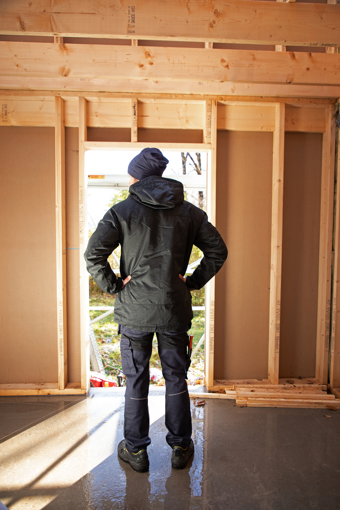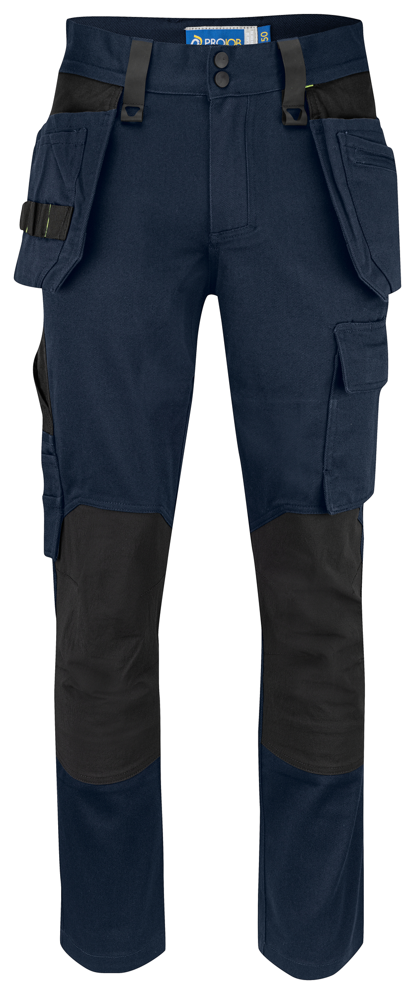 The 5560 Waistpant also includes spacious leg pockets on both sides—designed with functionality in mind. The left leg pocket accommodates tools and pens, and features a magnetic closure phone pocket, along with a bracket for fastening your ID card. On the right side, you will find a pocket for a folding rule and another for tools, complete with a knife button for added utility. With pre-bent knees and internal pockets for knee protectors that can be adjusted at two height levels, this product combines style with practicality.