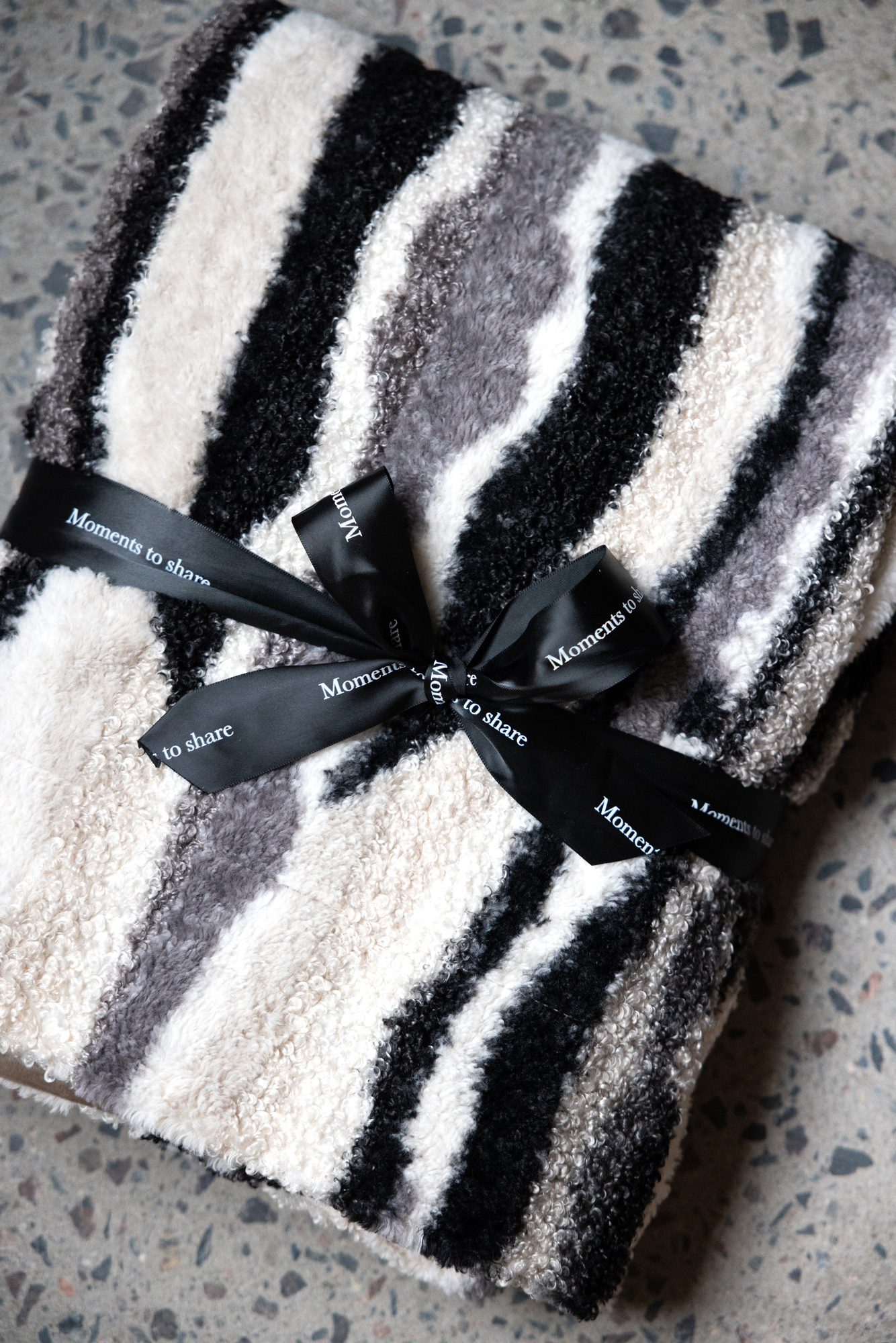 Introducing the Alba Plaid, a luxurious and cozy blanket designed to enhance your comfort and style. This versatile throw features a unique plaid print that seamlessly complements any setting, making it a perfect addition to your indoor and outdoor decor. Crafted from a delightful blend of teddy and faux fur, the Alba Plaid offers an irresistible texture that feels silky smooth against the skin. With a weight of 350/180 gsm, it provides exceptional warmth while remaining lightweight and easy to handle. The neutral color palette of gray, beige, and black ensures that it will effortlessly blend with your existing decor. Measuring 130x170 cm, the Alba Plaid is the ideal size for snuggling up on the couch or using during outdoor gatherings. Each blanket comes beautifully wrapped with a lovely ribbon, making it a great gift choice for any occasion.