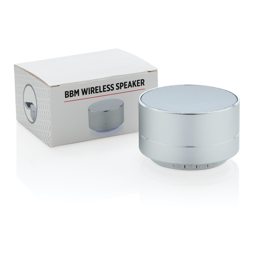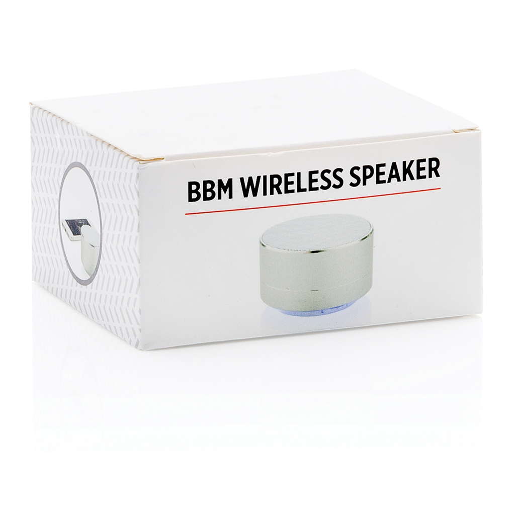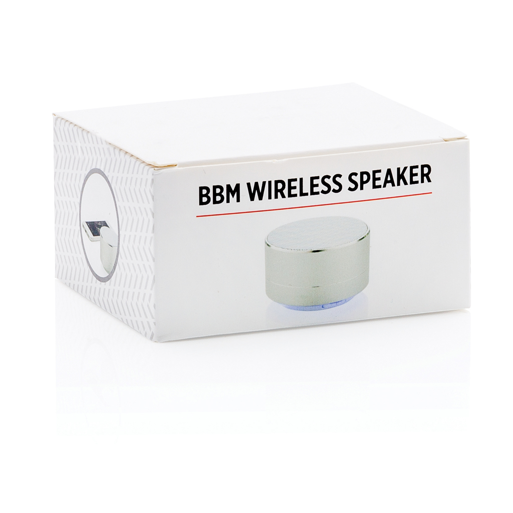 The BBM wireless speaker is a sleek and stylish aluminium speaker with impressive specifications. Boasting a 3W output and a built-in 300 mAh lithium battery, this speaker offers up to 4 hours of playing time on a single charge. With an operating distance of 10m, you can enjoy your music wirelessly without any interruptions. Additionally, the speaker features ambient blue light on the bottom, adding a cool visual element to your listening experience. The pick-up function also allows you to answer incoming calls effortlessly while enjoying your favorite tunes.