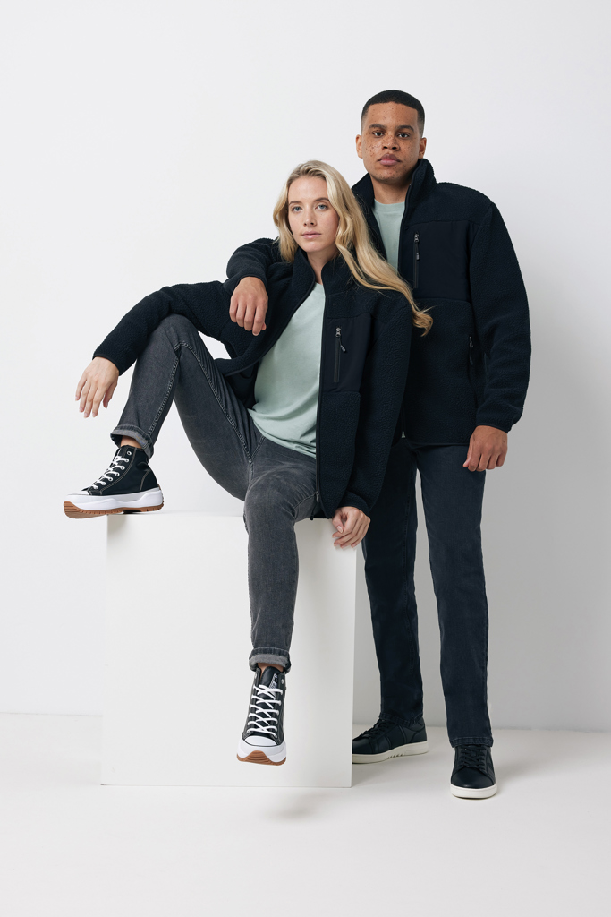 The Iqoniq Diran recycled polyester pile fleece jacket is a unisex relaxed fit zip through jacket that is both stylish and sustainable. Made from 100% post-consumer recycled polyester in 320 G/M², this jacket is a “must have” for anyone looking to make a fashion statement while also making a positive impact on the environment. The refined binding on the full jacket and soft jersey look from the inside provides both comfort and style. The jacket also features a woven chest pocket with a zipper for personalized decoration, as well as extra zip pullers in matching color for a polished look. With genuine recycled and organic fabric materials, this jacket is guaranteed to have a low environmental impact, as verified by the AWARE™ disruptive physical tracer and blockchain technology. By scanning the QR code, customers can access a digital passport of the product and see its journey towards sustainability. Additionally, 2% of proceeds from each sold jacket will be donated to Water.org, further supporting environmental causes. This product is also OEKO-TEX® STANDARD 100 certified, ensuring that it is free from harmful substances and safe for consumers.