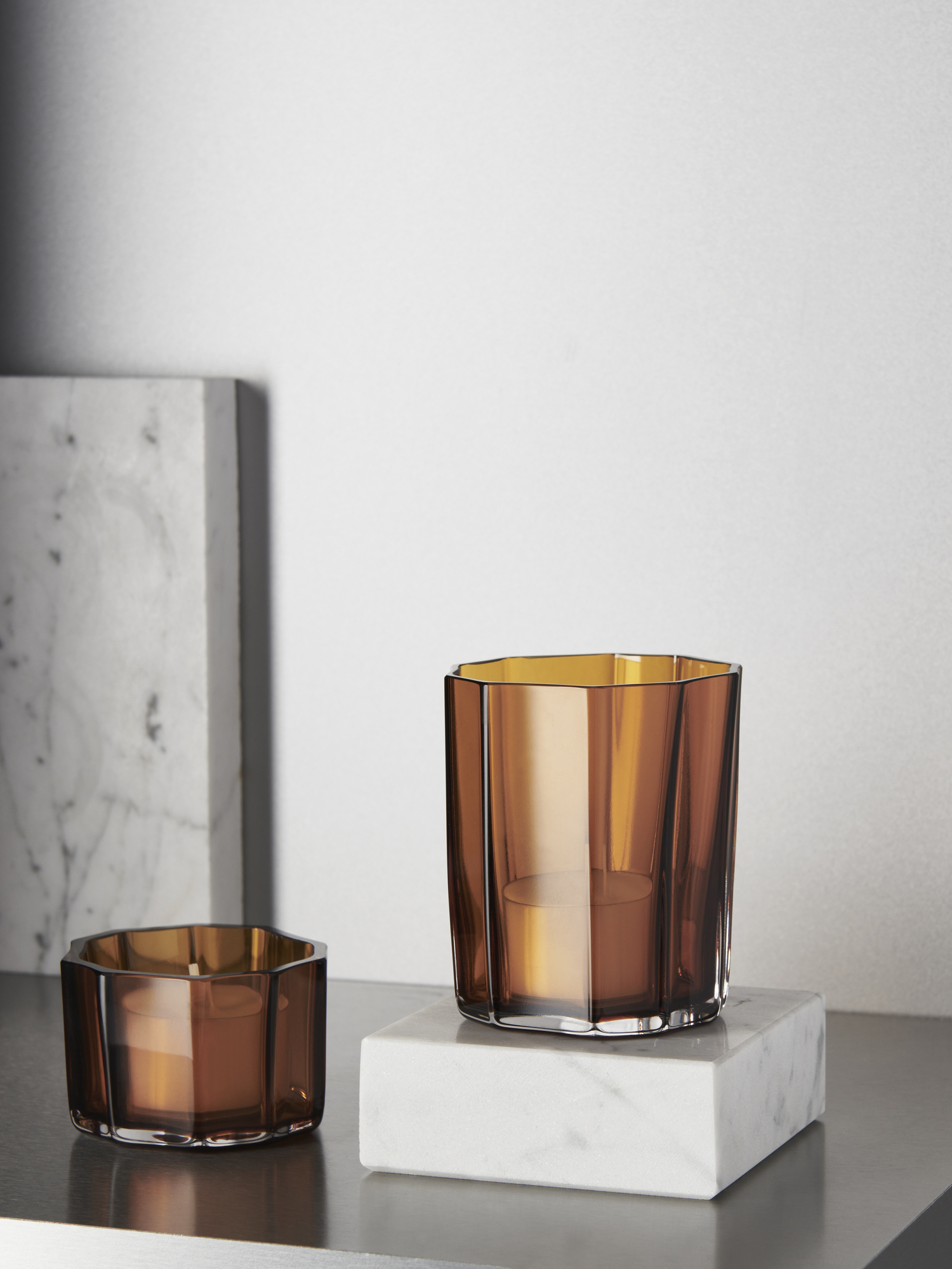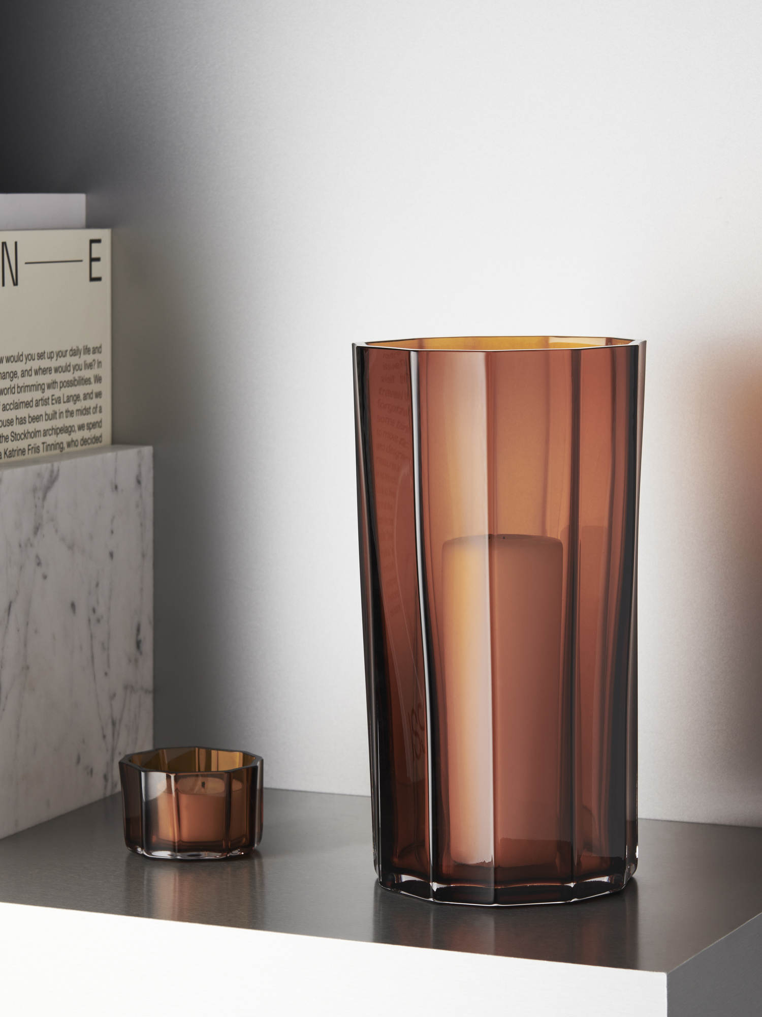 Introducing the Reed Votive Amber 45mm, a stunning home decor piece designed by renowned designer Monica Förster. This unique votive showcases a distinct design that highlights organic movement, creating a visual appeal that transforms any space. Measuring 45mm in height, the votive is crafted from high-quality amber glass, providing a warm and inviting glow when paired with a candle. The Reed series includes an array of vases, two votives, and a hurricane lamp, making it a versatile addition to your collection. Perfect for setting a cozy atmosphere during dinner parties or adding a touch of elegance to your home, the Reed Votive Amber will enhance the beauty of any room.