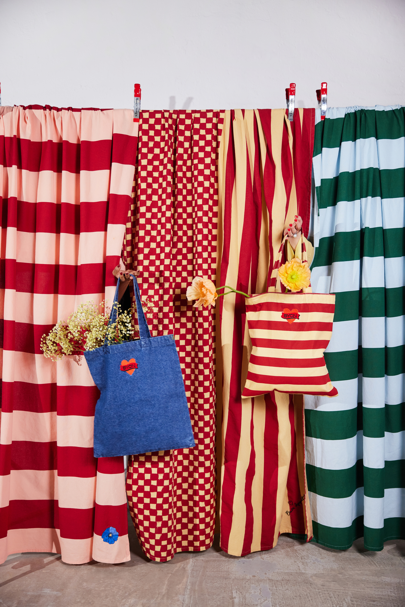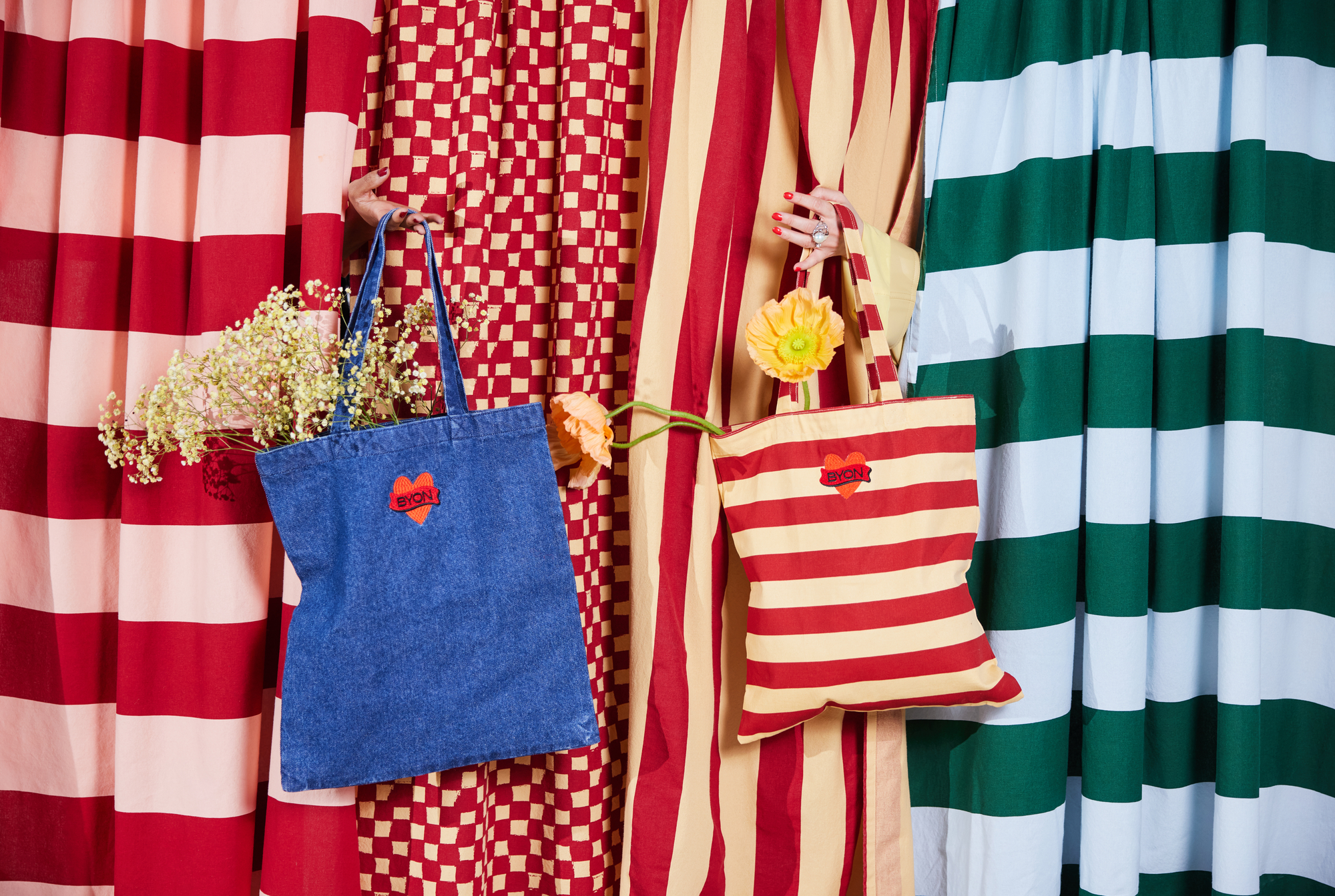 Introducing the Shopping bag Love, a stylish and functional tote designed to elevate your shopping experience. This versatile bag features expressive stripes and a vibrant colour combination of cherry red and mustard yellow, making it not just a shopping essential but also a fashion statement. The classic pattern is enhanced with an embroidered red vintage-inspired 'Byon' heart, reflecting the unique charm of Byon Studio. Crafted from organic cotton, the Love bag is environmentally friendly and durable, ensuring it supports your shopping needs for years to come. It comes with handles in two lengths for added convenience, making it easy to carry whether you are heading to the grocery store or a day out. With a generous size of 40x44cm, the Love bag is spacious enough for all your essentials. Plus, it is available in two distinct patterns and colours, allowing you to choose one that suits your style.