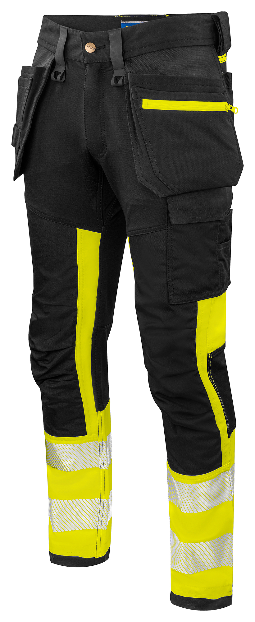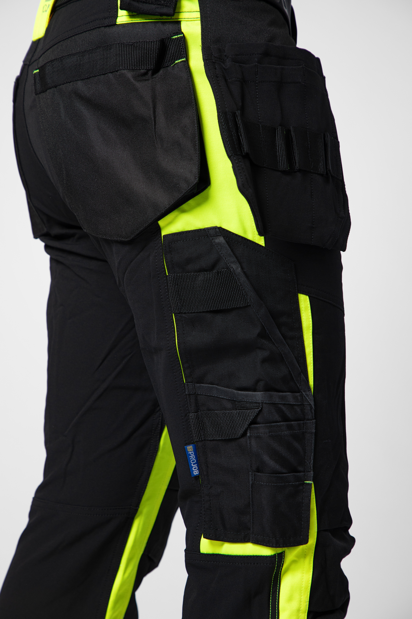 Denne buks er designet til maksimal komfort og bevægelsesfrihed. Den moderne pasform og 4-vejs stretch over lår og bagstykke sikrer, at du kan bevæge dig frit i alle retninger. Selvom der er små paneler i siderne, som ikke er i stretch for at give stabilitet, er buksen stadig behagelig at have på. Den indeholder praktiske hængelommer med ekstra rum, så du nemt kan opbevare og organisere dit værktøj. Med indvendig Cordura®-forstærkning kan hemsen af hængelommerne fjernes, hvis ønskes. Bukserne kommer med rummelige lårlommer, en funktionel venstre benlomme til værktøj og kuglepenne samt en praktisk telefonlomme med magnetlås. Højre sidelomme har plads til tommestok og en værktøjslomme med knivknap. Bukserne er også designet med muligheden for at tilføje ekstra udstyr via velcro, hvilket giver dig en stor grad af fleksibilitet til at tilpasse dit arbejdsudstyr. Forbøjede knæ og justerbare knælommer giver ekstra komfort og beskyttelse under aktive arbejdsopgaver. Med forstærkede områder i Cordura® er disse bukser også slidstærke og tåler daglig brug.