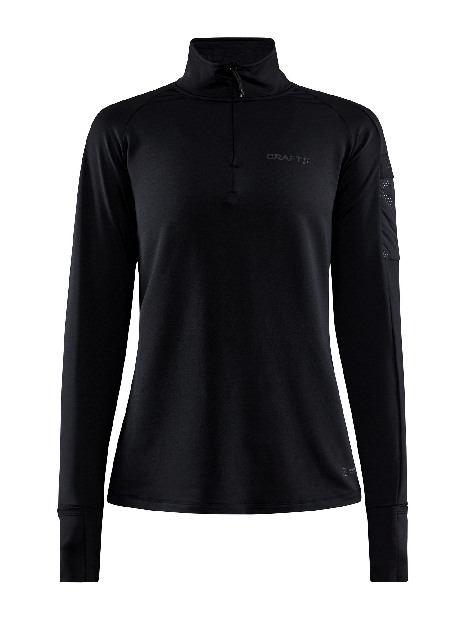 ADV SubZ LS W er en avanceret langærmet løbetrøje, der kombinerer stil og funktionalitet. Denne trøje er fremstillet af højkvalitets polyesterjersey med en loop back struktur, der sikrer ekstra komfort og varme under dine løbeture. Mesh-paneler ved armhulerne giver forbedret ventilation, hvilket gør den ideel til aktive dage. Turtle neck-designet med skjult lynlås og indvendig placket giver et sleek look, mens de foldbare ærmeender med tommelgreb holder hænderne varme på kolde dage. En praktisk vævet lomme på venstre ærme giver sikker opbevaring til småting. Med Craft-logoet på brystet og de seks punkter logoet på ryggen, får du et produkt, der ikke kun er funktionelt men også stilfuldt.