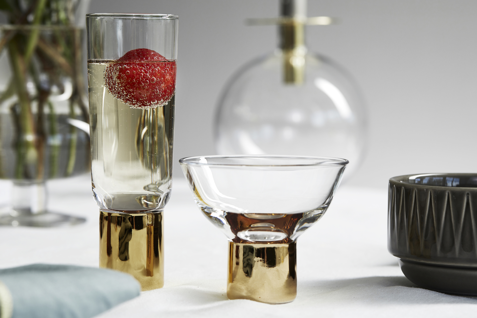 Oplev det stilfulde Club cocktail-/dessertglas i guld, 2-pak. Disse cocktailglas er designet med et ikonisk Clubdesign fra Sagaform, der bliver produceret af mundblæst glas og prydet med en elegant guldfarvet fod. Den alsidige udformning gør, at glassene ikke blot er ideelle til cocktails, men også fungerer perfekt som dessertskåle. Sælges i en praktisk 2-pak, hvilket gør dem til et fremragende valg til både hjemmebrug og til særlige begivenheder. Club guld-serien er en begrænset udgave, som relancerer Sagaforms populære Clubglas i en moderne fortolkning med luksuriøse gulddetaljer, men bevarer det samme unikke design. For at sikre langvarig skønhed anbefales håndvask.