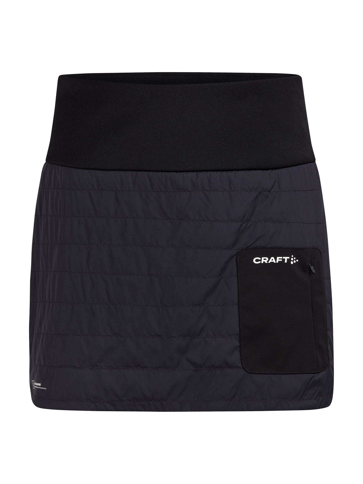CORE Nordic Ski Club Skirt W er den ideelle træningsnederdel til langrend under kolde forhold. Med sin quiltede og polstrede front og bagside, der tilbyder 60 g/m2 isolering, holder denne nederdel dig varm i de kolde måneder. Den børstede jersey på siderne sikrer ekstra bevægelsesfrihed, så du kan yde dit bedste under træningen. Nederdelen er designet med en bred elastik i taljen, hvilket giver en optimal pasform og komfort. Den har også en praktisk påsyet lomme med skjult lynlås foran samt en 2-vejs lynlås i siderne, der gør det nemt at tage nederdelen af og på.