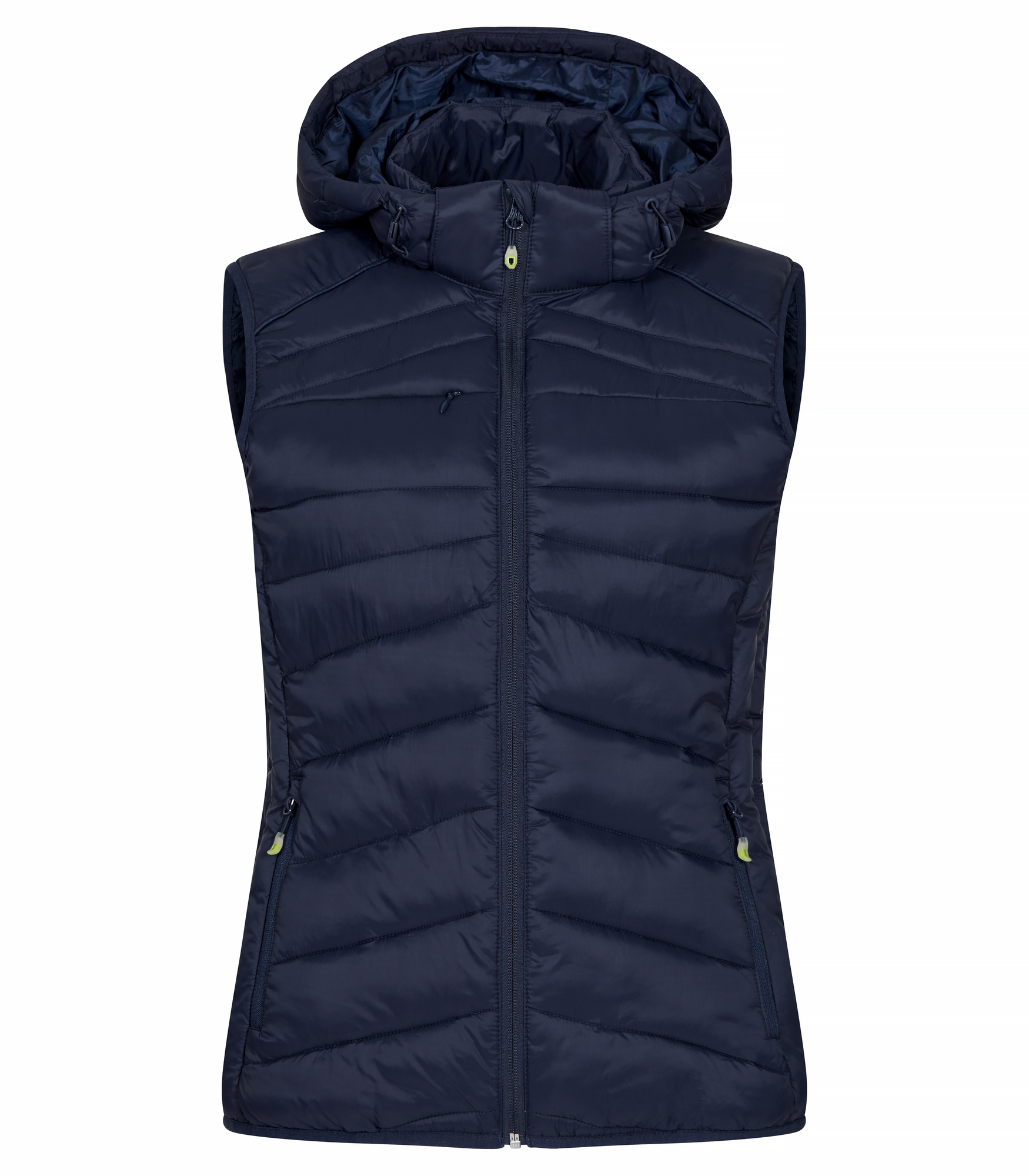 Idaho Vest Women er den ideelle løsning til kvinder, der værdsætter både stil og funktionalitet. Denne varme og lette vest er designet med dunlignende polstring, der sikrer komfort i koldt vejr. Vesten er fremstillet af 100 procent recycled polyamid, hvilket gør den til et bæredygtigt valg. Med tre udvendige lommer med lynlås og to praktiske inderlommer kan du nemt opbevare dine ejendele sikkert. Den elastiske tape på krop og arme sikrer en perfekt pasform, og den damemodel, der kommer med en aftagelig hætte, giver dig mulighed for at tilpasse din stil. Derudover har vesten en farvet strop, høretelefonløsning og lynlåsskyder, hvilket gør den til en moderne og funktionel beklædningsgenstand for enhver anledning.