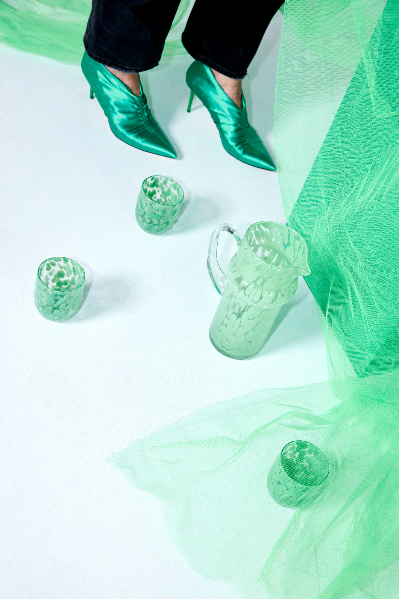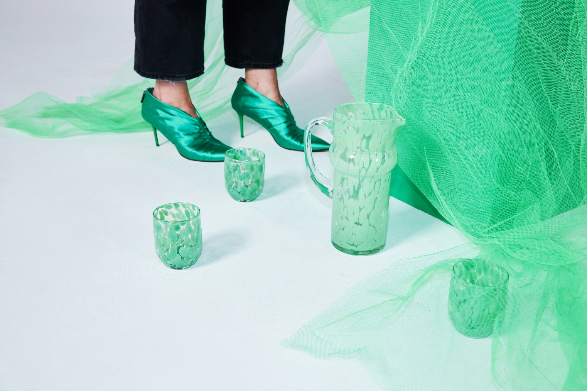 Kande Messy høj er det perfekte valg for dem, der ønsker at tilføre et kreativt og farverigt præg til deres borddækning. Denne smukke kande i æblegrønne toner er designet med en stram form og en bølget flæse, der giver den en unik og iøjnefaldende karakter. Med en kapacitet på 150 cl er Kande Messy høj ideel til både hverdagens måltider og festlige sammenkomster. Den funklende energi og det kreative kaos, som kanden udstråler, gør den ikke blot til et praktisk redskab, men også til et dekorativt element, der kan pryde ethvert middagsbord. Enten den bruges til at servere saft, vand eller som en pyntegenstand med en flot buket blomster, vil Kande Messy høj altid være iøjnefaldende.