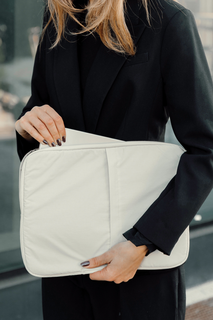 The KENTO Laptop Sleeve is made from super-light RCS-certified recycled nylon (228T) with a PU backing and finished with an RCS-certified recycled polyester 300T lining. Containing 55% certified recycled material, it combines responsible design with everyday durability. The secure main zipper compartment fits a 15.6” laptop and features 4 mm padding for reliable protection. A front zipper pocket keeps your small essentials within easy reach, making it perfect for busy days in the city, at school, or at work. Lightweight and functional — built for a young, modern lifestyle.