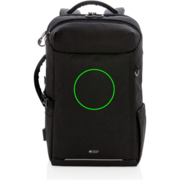 Ved at tilføje dit firmalogo på denne Swiss Peak AWARE™ XXL weekend rejse rygsæk, kan du øge din virksomheds synlighed og skabe et professionelt udtryk samtidig med, at du investerer i et kvalitetsprodukt, der sender et positivt budskab om bæredygtighed og miljøbevidsthed. Med denne praktiske og trendy rygsæk kan dine medarbejdere, kunder eller samarbejdspartnere få glæde af et personligt touch, der viser omtanke for både stil og funktionalitet. Gør din virksomheds image endnu stærkere ved at tilføje et personligt præg til din rejseudstyr, og skil dig ud fra mængden med en Swiss Peak AWARE™ XXL weekend rejse rygsæk med dit eget logo.