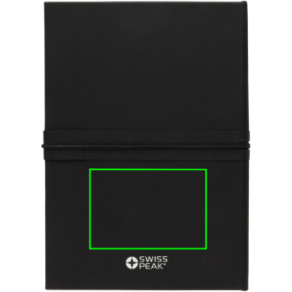 This luxury gift set includes all the essentials you need to get through your workday in style. The 350 ml double-walled tumbler is vacuum insulated, keeping your drink hot or cold for an extended period. The leak-proof lid ensures your clothes stay dry, even if the tumbler is accidentally tilted or not held upright.To keep your most important keys always within reach, the set includes a premium Swiss Peak keychain featuring a glossy metallic finish and a beautifully crafted PU leather strap.Need to jot down some thoughts or ideas? This set also comes with a sleek business ballpoint pen with a writing capacity of 1000 meters, and a soft-touch PU notebook made from recycled polyester. The notebook contains 160 cream-colored pages made from recycled paper.All items in this gift set are RCS certified, guaranteeing a fully verified supply chain for the recycled materials used. In total, the products in this set consist of 75% recycled content.
